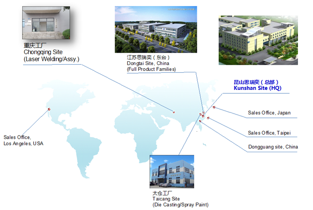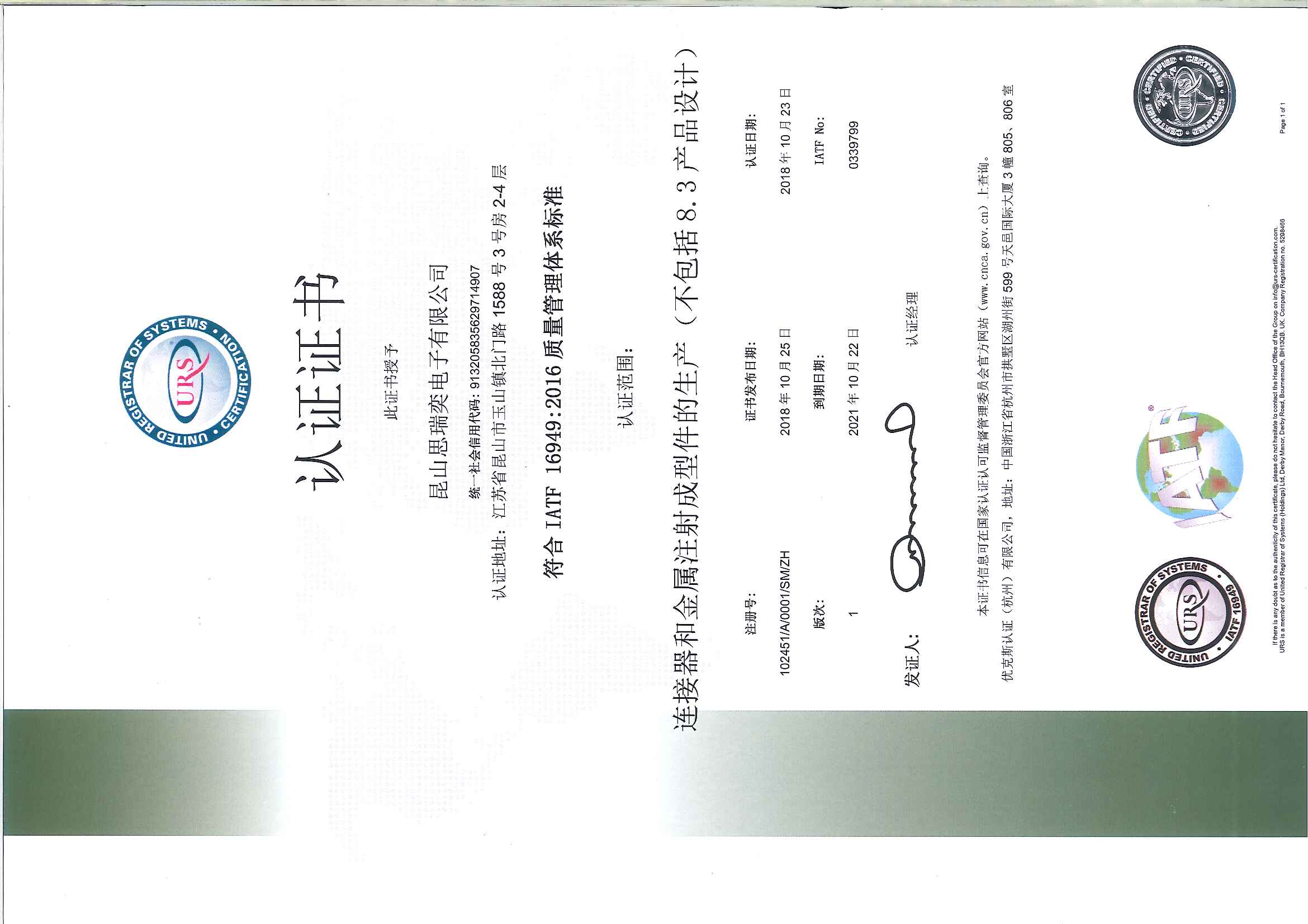 思瑞奕電子有限公司成立于2010年10月,注冊資金7500萬人民幣,總部位于江蘇省昆山市,在重慶、江蘇東臺、江蘇太倉設(shè)有分廠,公司于2011年通過ISO9001/ISO14001認(rèn)證,2013年通過高新技術(shù)企業(yè)和TS16949(IATF)體系認(rèn)定,2016年先后通過知識產(chǎn)權(quán)管理體系認(rèn)證、安全生產(chǎn)標(biāo)準(zhǔn)化認(rèn)證,2017年獲頒江蘇省民營科技企業(yè)、2018年先后獲得蘇州市人民政府認(rèn)定企業(yè)技術(shù)中心、科技部認(rèn)定中小型科技企業(yè)、江蘇省最具成長性高科技企業(yè)、2020年獲得江蘇省人民政府認(rèn)定企業(yè)技術(shù)中心、2021年獲得蘇州市瞪羚計劃入庫企業(yè)、江蘇省省級工程技術(shù)研究中心、江蘇省專精特新中小企業(yè)等榮譽(yù)稱號......